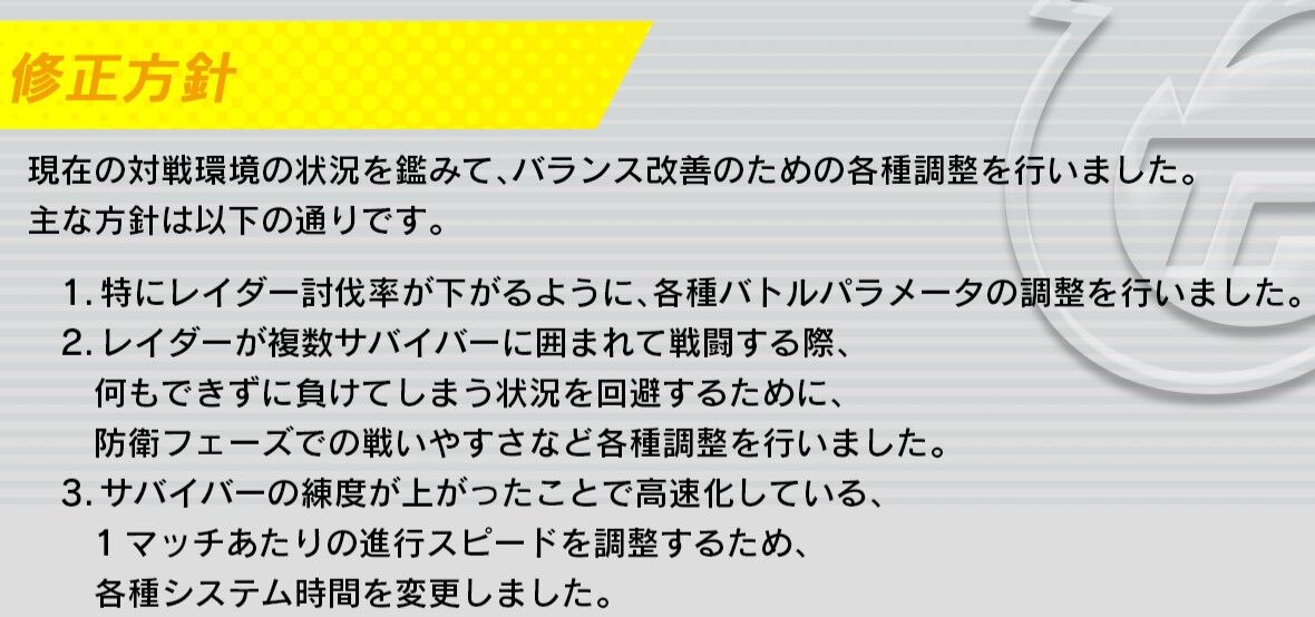 バトルバランス調整のため、今後レイダー側には、別途何らかの強化を加える予定です