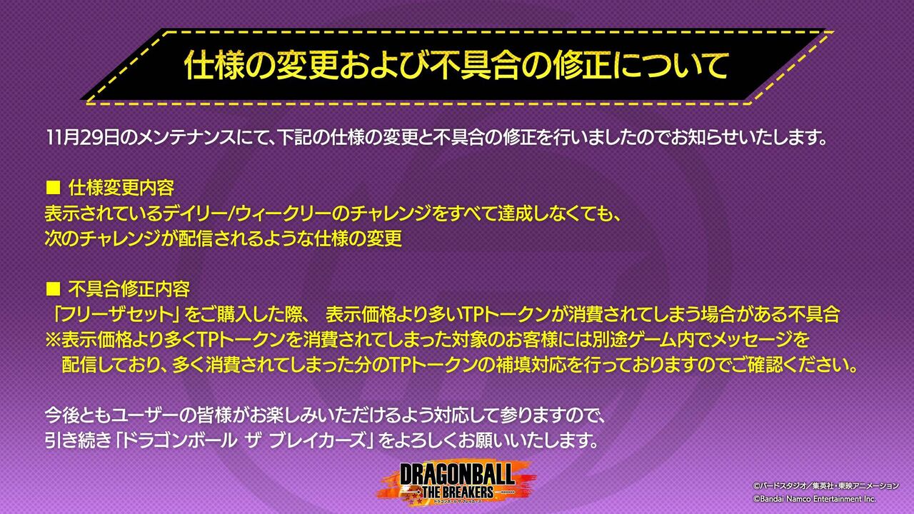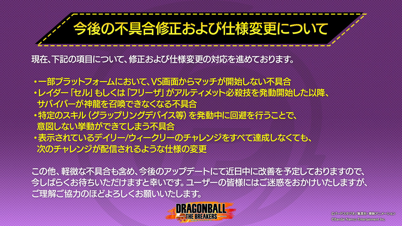 【ブレイカーズ】ロリキャン等の不具合やデイリー/ウィークリーの仕様変更等の調整が告知!